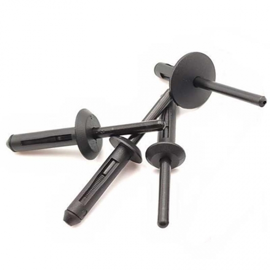 The plastic rivets can be used in front bumper, fender fascia, hood, body moldings, air ducts, cladding, gear train, wiring repair, seats, adjusters, recliners, riser rivet and shields.